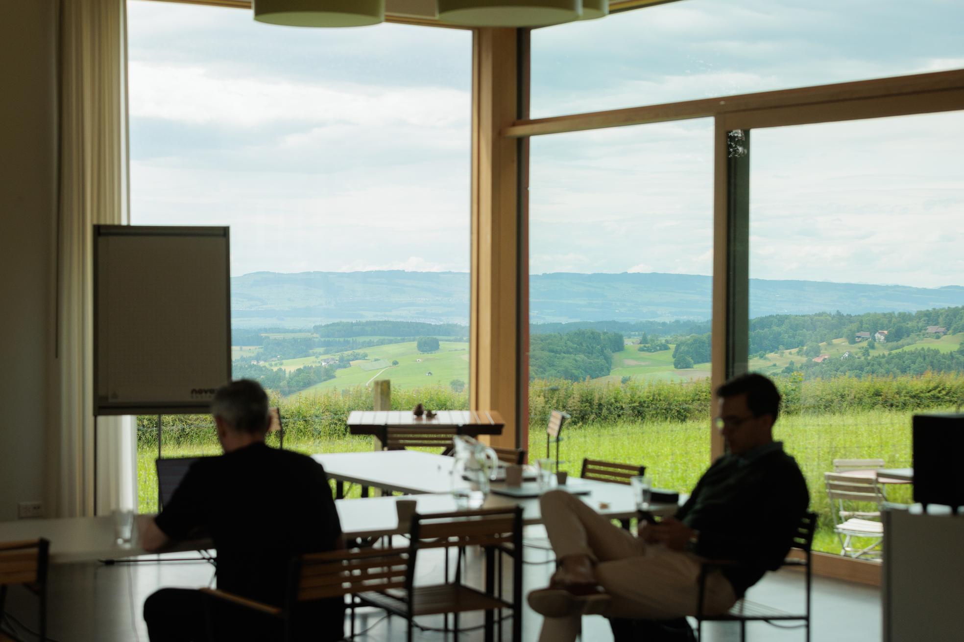 Ob Tagungen, Strategiemeetings, Kreativ-Workshops oder fokussierte Brainstormings – der lichtdurchflutete Pavillon mit raumhohen Fenstern bietet einen inspirierenden Ort für konstruktiven Austausch und konzentrierte Zusammenarbeit. Rund 30 Minuten von Zürich, Zug oder Rapperswil entfernt, ermöglicht er neue Perspektiven auf das Daily Business. Unsere historische Villa ergänzt das Angebot mit komfortablen Übernachtungsmöglichkeiten für mehrtägige Konferenzen.
