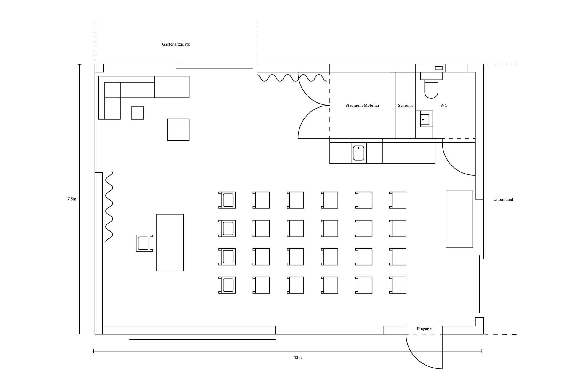 Mit 70 Quadratmetern bietet der Pavillon Platz für bis zu 40 Personen – ideal für Workshops, Meetings und kleinere Konferenzen – und ist mit allem ausgestattet, das es für eine inspirierende und effiziente Zusammenarbeit braucht.